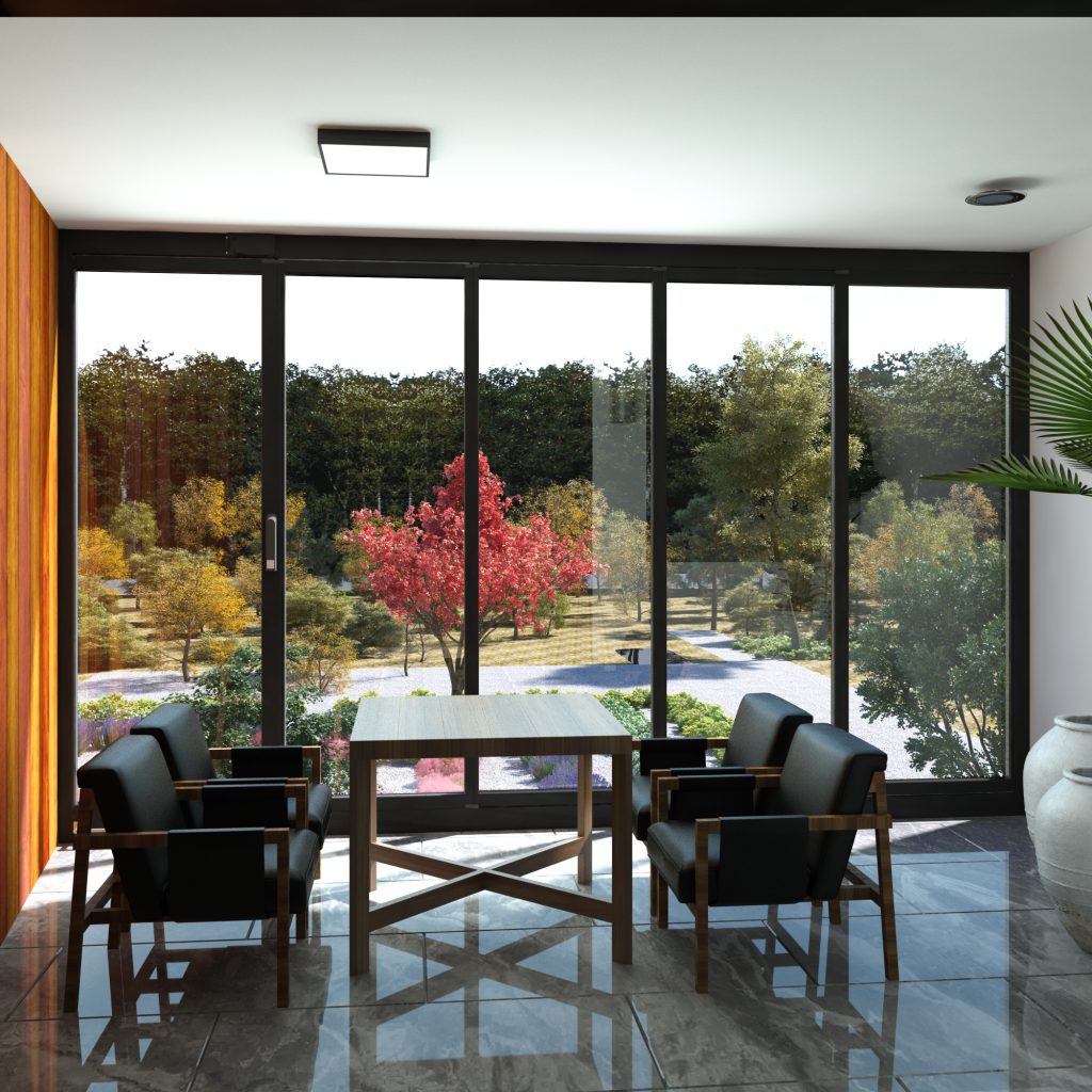 El diseño de perfiles finos y elegantes ofrece una vista continua sin interrupciones, sin dividir el paisaje. Aporta una imagen moderna sin alterar la armonía arquitectónica, tanto en viviendas como en cafeterías, restaurantes y espacios comerciales. Su estructura de materiales duraderos garantiza un uso prolongado, mientras que el sistema de cierre seguro proporciona un nivel adicional de seguridad.