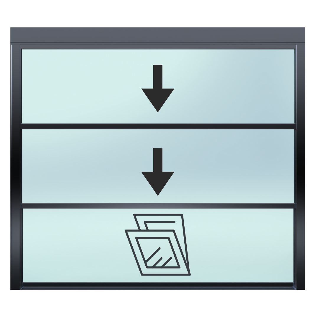 | [ 04 ] Opciones de apertura del sistema | Estándar con recogida hacia abajo, sistema con recogida hacia arriba, panel inferior abatible tipo vasistas |