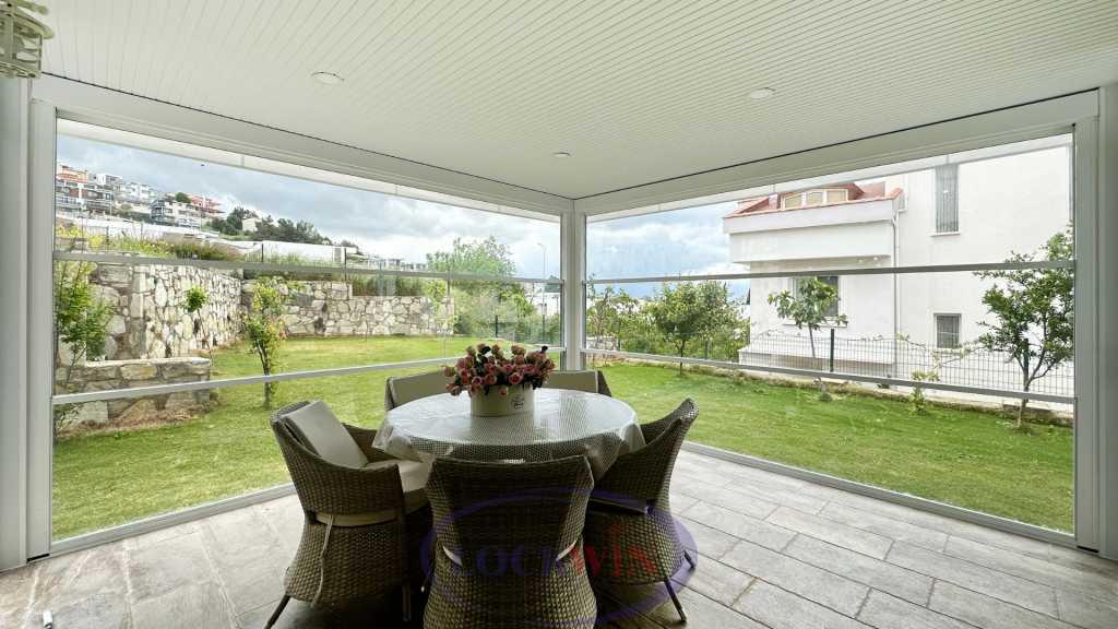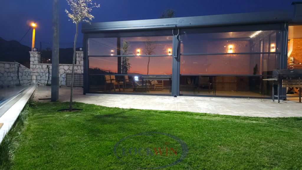 El sistema, con su principio de funcionamiento motorizado y control remoto, permite que los paneles de vidrio se desplacen hacia arriba y hacia abajo de manera silenciosa, equilibrada y segura. Las opciones de vidrio templado y doble acristalamiento ofrecen ventajas en ahorro energético, seguridad y durabilidad. Los perfiles portantes de aluminio presentan una alta resistencia a las condiciones climáticas exteriores, aportando al mismo tiempo una estética moderna y elegante.